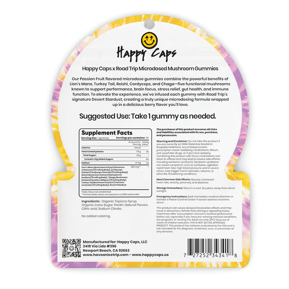Happy Caps® x Road Trip – MICRODOSED Gummies + Functional Mushrooms